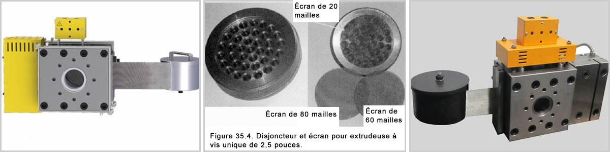 Les changeurs d'écran automatiques sont utilisés dans des processus continus où la contamination peut gloger des packs d'écran normaux dans un temps relativement court par rapport au temps d'exécution de la production. Le changeur d'écran ou le système de filtrage choisi dépend sur le processus, le débit, la durée du cycle, la contamination et la taille de l'extrudeuse.